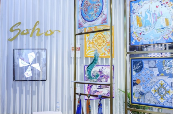 當(dāng)“美好生活”遇見(jiàn)展陳藝術(shù),蘇豪控股集團(tuán)融合數(shù)字化技術(shù)與場(chǎng)景化體驗(yàn),打破傳統(tǒng)展陳的物理邊界。蘇豪紡織男女裝展位構(gòu)建“云上廣交”,3D虛擬展廳將功能性運(yùn)動(dòng)夾克的再生材料透濕性能轉(zhuǎn)化為動(dòng)態(tài)影像,秋冬裝壓膠無(wú)縫工藝通過(guò)微距鏡頭纖毫畢現(xiàn);150克輕量化針織毛衫搭載線上交互系統(tǒng),采購(gòu)商可在“云端”觸控面料肌理,實(shí)時(shí)調(diào)整紗線棉混比例參數(shù)。箱包展位以“自然共生”為敘事主線,蝴蝶振翅、鮮花綻放的視覺(jué)符號(hào)貫穿空間,采購(gòu)商通過(guò)數(shù)字界面沉浸式漫游精品館,與3D展品實(shí)時(shí)交互獲取多維數(shù)據(jù)。蘇豪中嘉展位以“可持續(xù)視覺(jué)語(yǔ)法”破題,采用可回收材料與模塊化結(jié)構(gòu),通過(guò)場(chǎng)景化陳列還原展陳、高爾夫球場(chǎng)、莫奈花園等場(chǎng)景,輔以互動(dòng)數(shù)字屏展示產(chǎn)品,讓客商直觀感受。海企長(zhǎng)城服配展位則讓AI成為“潮流翻譯官”,通過(guò)全球時(shí)尚大數(shù)據(jù)抓取當(dāng)季流行色譜與廓形趨勢(shì),將可循環(huán)再生纖維與環(huán)保數(shù)碼印花技術(shù)融入基礎(chǔ)款設(shè)計(jì),打造適配多元消費(fèi)場(chǎng)景的服飾配件矩陣,在實(shí)用主義與美學(xué)表達(dá)間找到精準(zhǔn)平衡點(diǎn)。