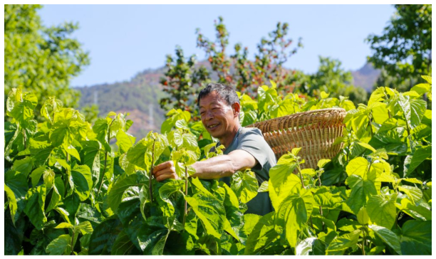蠶農采摘桑葉(2025年5月7日攝)