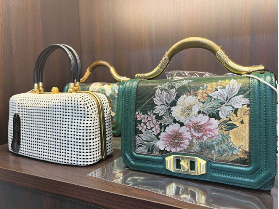 2017年,蔡霞明與國際著名服裝設(shè)計師勞倫斯許合作的30多套蘇繡服裝登上巴黎時裝周;2019年,蔡霞明與笠軒華服合作,攜70余件緙絲作品再登巴黎時裝周。蔡霞明緙絲藝術(shù)館成立后,為了更好地推動緙絲走進日常生活,蔡霞明結(jié)合年輕人的喜好,設(shè)計了緙絲手包、緙絲掛墜、緙絲耳飾等緙絲生活衍生品。同時,她還將緙絲技藝進行延伸,向收藏品、工藝品方向發(fā)展,推出了緙絲宮扇、緙絲臺屏等特色產(chǎn)品。