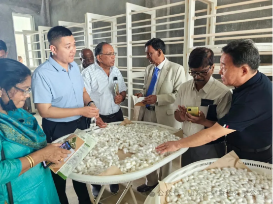 5月23日下午,印度絲綢協(xié)會代表團在房德文、徐善亭的陪同下,共同前往江蘇省東臺市考察蠶桑生產(chǎn)。