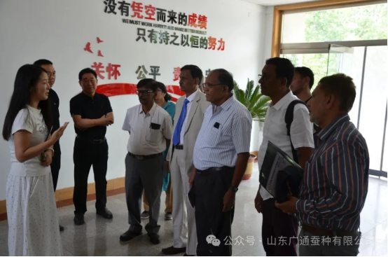 5月23日上午,雙方在集團二樓會議室進行座談交流。首先,雙方介紹了參加座談交流會的人員;然后觀看了廣通集團企業(yè)簡介視頻;隨后印度考察團領(lǐng)隊對印度絲綢協(xié)會活動、全國蠶桑生產(chǎn)經(jīng)營、蠶絲出口、科技研發(fā)、蠶繭生產(chǎn)及生絲生產(chǎn)等情況進行交流;最后,雙方就蠶種生產(chǎn)、蠶種出口、葉綠素項目、生產(chǎn)設(shè)備、削口繭、蠶種場建設(shè)等事項進行深入溝通交流,對下一步深入合作事項達(dá)成初步意向。印度絲綢協(xié)會代表團團長Dr.S.B.Dandin先生對廣通集團此次熱情接待和深入交流表示感謝,對廣通在蠶種生產(chǎn)、科技、市場等方面的業(yè)績深表贊許,并邀請廣通集團到印度進行實地參觀、考察,落實雙方達(dá)成的共識,加深合作交流、共同促進雙方事業(yè)的良好發(fā)展。