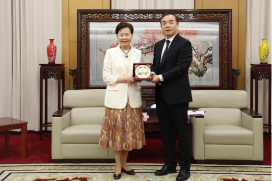張曉宏代表學(xué)校向林鄭月娥贈(zèng)送蘇州大學(xué)紀(jì)念品。
