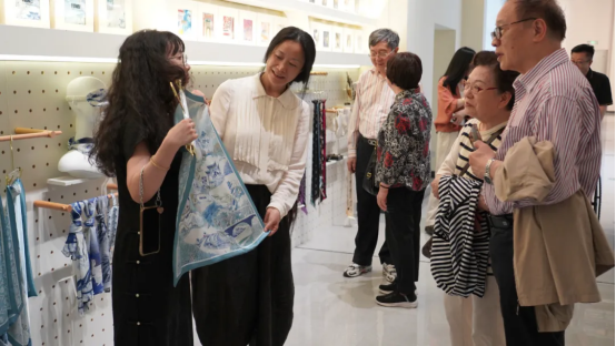 浙江理工大學(xué)湖州研究院院長(zhǎng)、教授姚琛,院長(zhǎng)助理胡若涵老師,院常務(wù)專(zhuān)家、湖州綾絹研究所楊健老師熱情接待。