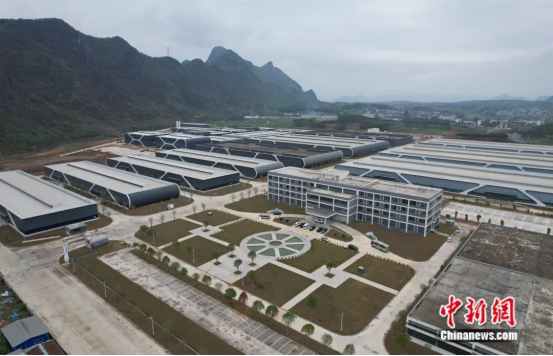圖為航拍廣西忻城繭絲綢產(chǎn)業(yè)園