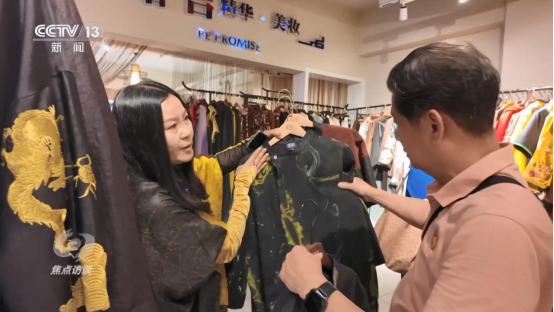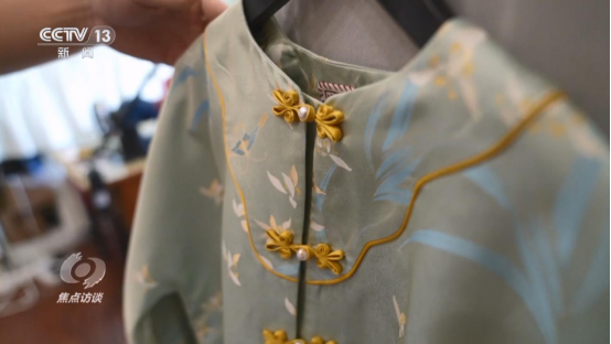 除了傳統(tǒng)的紡織業(yè)從業(yè)人員,宋錦真正出圈,還少不了更多年輕人的參與。在蘇州街頭,記者發(fā)現(xiàn)了一家很有特色的新中式服裝店。里面不少服裝選用的都是宋錦、羅料等傳統(tǒng)面料來手工制作。