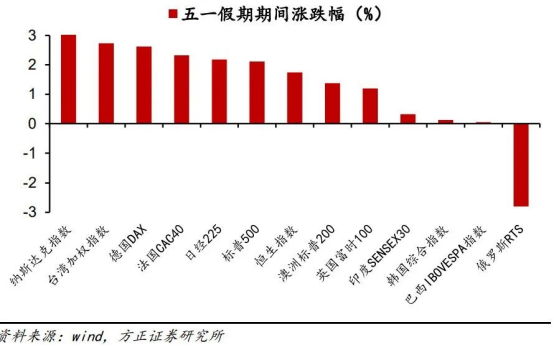 五一假期期間,除俄羅斯RTS指數(shù)(-2.8%)外,全球主要經(jīng)濟體股票指數(shù)均錄得正收益。