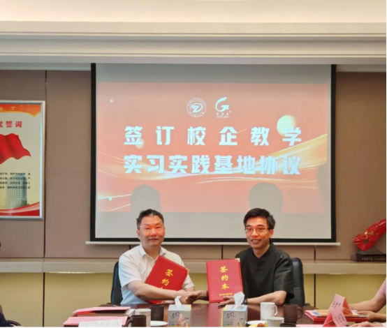 座談現(xiàn)場舉行大學生實踐實習基地簽約與授牌儀式,材料學院院長張先明代表學院與金富春集團總經(jīng)理周駿杰共同簽訂了校企實習(實踐)基地協(xié)議。