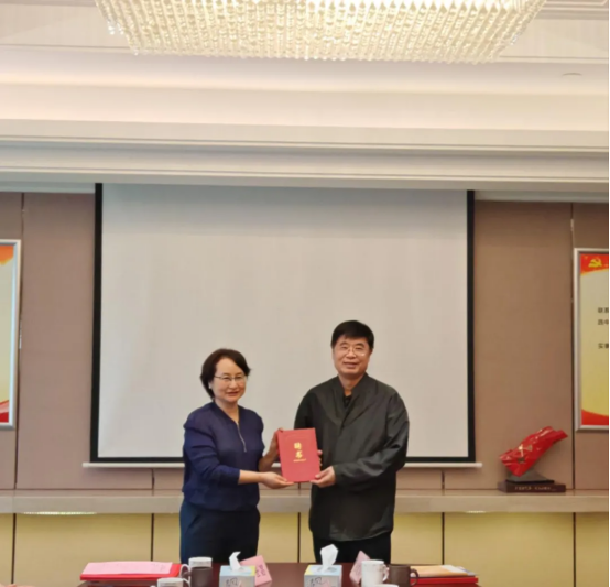 為助力學科建設(shè)和人才培養(yǎng),特聘周文峰為學院兼職教授,姚珺為周文峰頒發(fā)兼職教授聘書。