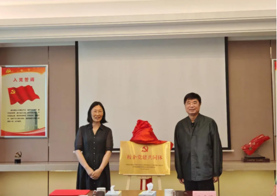 材料學院黨委書記仰瀅與中共金富春集團有限公司黨總支書記周文峰共同為黨建聯(lián)建銅牌揭牌。
