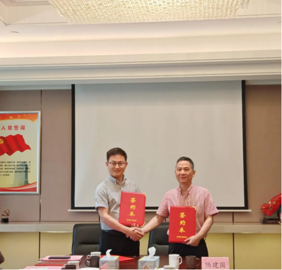 全國黨建工作樣板支部--材料科學與工程學院高分子材料系教工黨支部書記陳世昌與中共金富春集團有限公司黨總支副書記陸建國共同簽約。