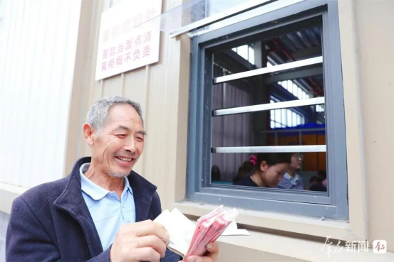 6月5日,在石泉縣池河鎮(zhèn)蠶繭交易智能化收烘中心,蠶農(nóng)售繭后現(xiàn)場(chǎng)領(lǐng)取現(xiàn)金。