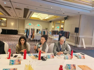 當(dāng)?shù)貢r(shí)間6月9日下午,“絲韻東方 織就未來”盛澤織造倫敦推介會在英國倫敦舉辦。這是“盛澤織造”繼摩洛哥之后參與蘇州市“百團(tuán)千企出?!睂m?xiàng)行動的又一舉措。此次活動向英國當(dāng)?shù)氐亩嗉壹徔椃b品牌代表、設(shè)計(jì)師、采購商等推介了綢都盛澤,助力盛澤在歐洲市場打響品牌知名度,提升國際影響力。副區(qū)長、吳江高新區(qū)黨工委書記、盛澤鎮(zhèn)黨委書記陳宇,中國國際貿(mào)易促進(jìn)委員會、中國國際商會駐英國代表處首席代表張慧娟,英國WTD公司首席執(zhí)行官Pan Philippou,倫敦藝術(shù)學(xué)院時(shí)尚專業(yè)講師Lena Lee,F(xiàn)ourAcesFashionHouse采購主管Sandesh acharya等參加活動。
