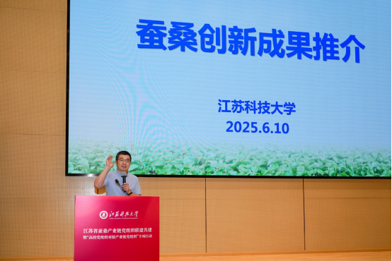 大會(huì)還同步舉行了產(chǎn)業(yè)鏈黨組織選派黨員鄉(xiāng)村振興指導(dǎo)員與地方結(jié)對(duì)儀式、校企黨員協(xié)同攻堅(jiān)小組成立儀式及科技小院授牌儀式。學(xué)校蠶業(yè)研究所所長(zhǎng)、生物技術(shù)學(xué)院院長(zhǎng)譚安江研究員在大會(huì)上做了精彩的蠶??蒲谐晒平?,充分展示了江蘇科技大學(xué)在服務(wù)國(guó)家蠶桑產(chǎn)業(yè)和鄉(xiāng)村振興戰(zhàn)略中的科技支撐能力與創(chuàng)新實(shí)力。