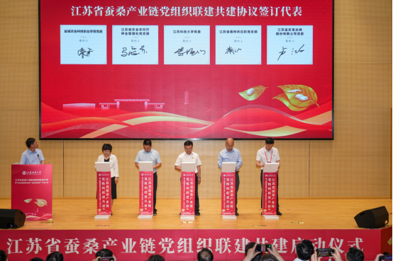 6月10日下午,江蘇省蠶桑產(chǎn)業(yè)鏈黨組織聯(lián)建共建暨“高校黨組織對(duì)接產(chǎn)業(yè)鏈黨組織”專(zhuān)項(xiàng)行動(dòng)啟動(dòng)儀式在江蘇科技大學(xué)長(zhǎng)山校區(qū)舉行。政府機(jī)關(guān)、高校院所、行業(yè)企業(yè)共24家鏈上黨組織攜手,以黨建聚鏈成勢(shì)推動(dòng)江蘇省蠶桑產(chǎn)業(yè)可持續(xù)發(fā)展。