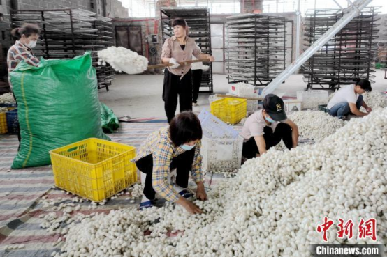 近日,在廣西羅城仫佬族自治縣懷群鎮(zhèn)一家合作社,農(nóng)戶在分揀蠶繭。近年來,羅城縣因地制宜調(diào)整產(chǎn)業(yè)結(jié)構(gòu),依托“公司+基地+合作社+農(nóng)戶”模式,推廣良種良法和小蠶共育技術(shù),不斷做大做強桑蠶產(chǎn)業(yè),促進農(nóng)民增收、農(nóng)業(yè)增效,助力鄉(xiāng)村振興。圖為農(nóng)戶在分揀蠶繭