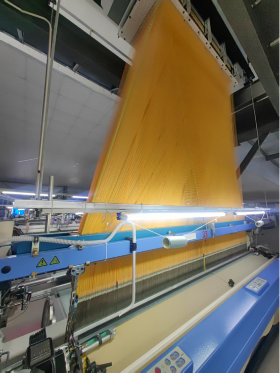 圖為廣西河池市宜州區(qū)廣西嘉聯(lián)絲綢股份有限公司的全真絲壯錦提花生產(chǎn)線