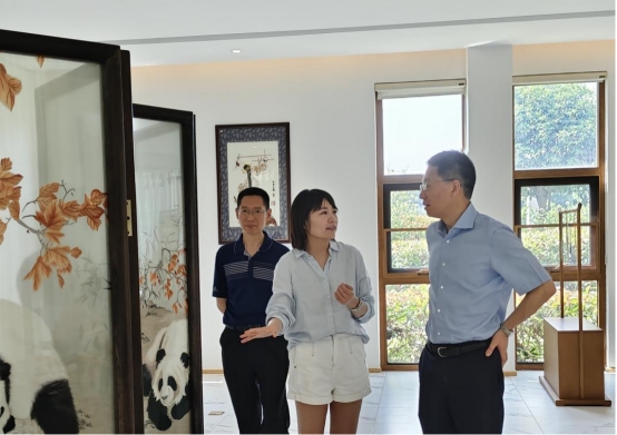 鐘勉一行參觀了“千鶴絲語”蠶桑文化展示中心,參觀途中,薛憶向調研組詳細匯報了公司發(fā)展歷程、核心業(yè)務布局以及在助農帶農、促進地方增收方面的顯著成效。重點匯報其歸國后在蠶桑傳統(tǒng)產業(yè)升級中的創(chuàng)新做法,薛憶特別介紹了其歸國后,帶領公司團隊在蠶桑這一傳統(tǒng)古老產業(yè)中注入創(chuàng)新動能的實踐做法,通過引入智能化管理打造智慧桑園,運用生物技術優(yōu)化蠶種品質,并積極探索定制化、高附加值蠶桑產品開發(fā),有效破解了傳統(tǒng)生產模式的瓶頸。