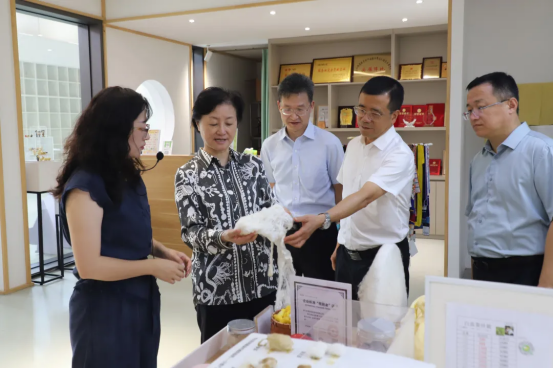 考察組一行走訪調研了凱喜雅集團海寧優(yōu)質蠶桑示范基地、蠶-桑-菌-文綜合技術集成示范基地,聽取了基地負責人對蠶桑基地建設情況的介紹,并參觀了蠶桑文化研學館??疾旖M對基地“蠶-桑-菌-文”集成示范模式表示肯定,通過推廣多元化應用的桑蠶優(yōu)良新品種,結合高值化利用廢棄桑枝,進一步挖掘蠶桑文化研學深度開發(fā)與應用,推動了蠶桑文化與教育、旅游、文創(chuàng)等產(chǎn)業(yè)的深度融合,形成了多元化的產(chǎn)業(yè)格局,有效帶動區(qū)域經(jīng)濟發(fā)展,具有顯著社會效益。