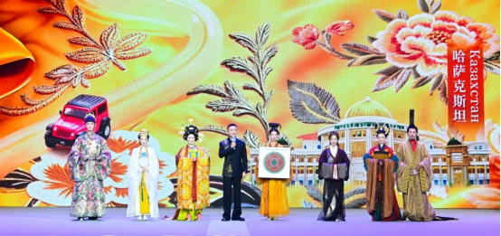 值得一提的是,活動(dòng)現(xiàn)場(chǎng)《衣錦天下·絲路季》衣錦團(tuán)成員尼格買提、白冰為中哈友誼獻(xiàn)上禮物。白冰身著仿西漢長(zhǎng)沙馬王堆素紗襌衣,與其他模特一同展示中國(guó)漢服之美,千年服飾文化韻味盡顯,也寓意著絲路國(guó)家的文明在此交融生輝?;顒?dòng)高潮當(dāng)屬盤扣畫《六瑞織春》的亮相,它巧妙融合中國(guó)傳統(tǒng)紋樣和中亞五國(guó)特色紋樣,以針線為筆生動(dòng)詮釋了紋樣作為文化符號(hào)的獨(dú)特魅力,彰顯中華文明的深厚底蘊(yùn),更傳遞出新時(shí)代絲路文明“各美其美,美美與共”的美好展望,為中哈友誼獻(xiàn)上一份飽含文化深意的珍貴禮物。