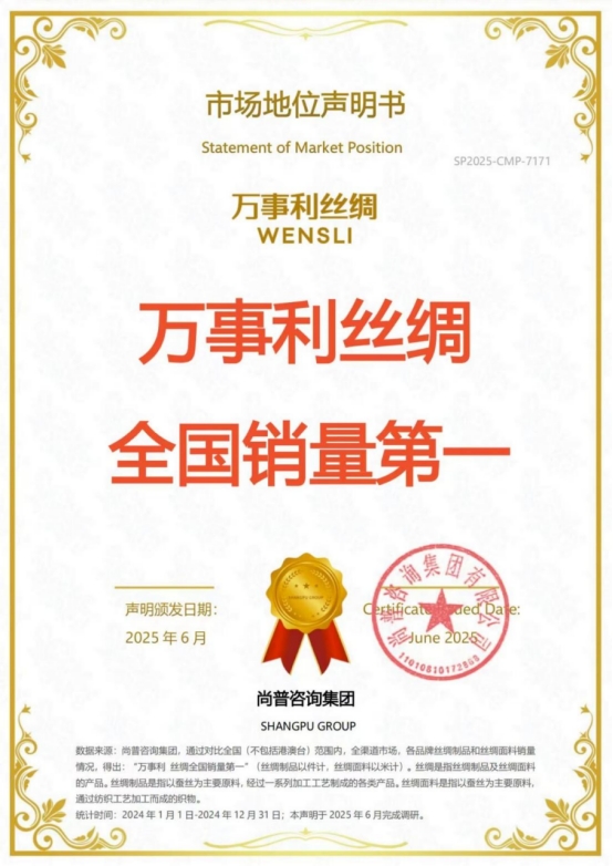 近日,根據(jù)市場(chǎng)研究機(jī)構(gòu)尚普咨詢發(fā)布的數(shù)據(jù),萬(wàn)事利絲綢(公司簡(jiǎn)稱:萬(wàn)事利,股票代碼:301066)憑借強(qiáng)勁的市場(chǎng)表現(xiàn)榮膺2024年度全國(guó)絲綢銷量第一。這一成績(jī)不僅彰顯了其在傳統(tǒng)絲綢行業(yè)中的標(biāo)桿地位,也代表著中國(guó)絲綢品牌在創(chuàng)新驅(qū)動(dòng)下的華麗蝶變。