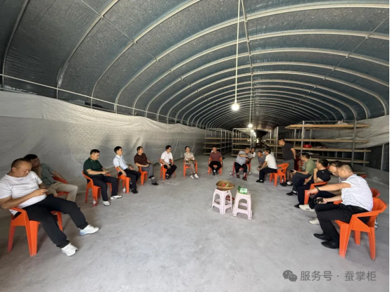(在墊江縣沙坪鎮(zhèn)雙塘村大蠶蠶棚召開(kāi)現(xiàn)場(chǎng)交流座談會(huì))