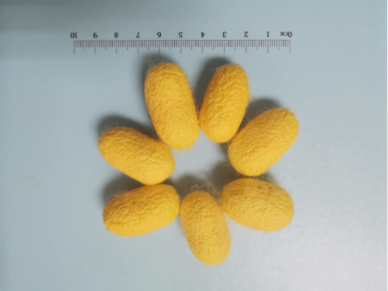 “蘇彩2號”黃繭新蠶品種被譽為彩色繭“三劍客”之一,該品種由蘇州大學、西南大學、河南省蠶業(yè)科學院的國家蠶桑產(chǎn)業(yè)技術(shù)體系有關(guān)專家聯(lián)合選育,專家組利用天然的彩色繭資源與大繭型的白繭資源進行反復地雜交、回交選擇,歷經(jīng)十余年新育成的產(chǎn)量高、抗性強、品種性狀穩(wěn)定的天然金黃色繭品種。2024年通過北方蠶區(qū)科研協(xié)助區(qū)審定為天然彩色繭新蠶品種“蘇彩2號”。