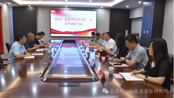 7月28日,山東廣通蠶種集團(tuán)有限公司董事長連海剛、執(zhí)行董事房德文等一行4人到蠶業(yè)所考察調(diào)研,蠶業(yè)所黨委書記陰衛(wèi)軍、專職副書記王向譽(yù)、副所長喬鵬、首席專家郭光以及部門負(fù)責(zé)人和科研代表參加活動。
