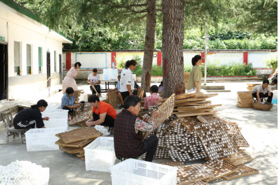 池河鎮(zhèn)是石泉縣蠶桑產(chǎn)業(yè)發(fā)展的核心區(qū)。記者在石泉縣池河鎮(zhèn)雙營村共享蠶室看到,村民們正在手腳麻利地采收著飽滿的夏蠶繭,蠶室里透著豐收的喜悅和干勁,一派熱火朝天的繁忙景象。雙營村采用的是集體養(yǎng)蠶模式,通過“共享蠶室”實(shí)現(xiàn)規(guī)模化、集約化生產(chǎn),而鄰近的一些村莊則繼續(xù)沿用靈活的家庭式采摘。這種“集體+家庭”雙軌并行的模式,有效調(diào)動起各方參與的積極性,為產(chǎn)業(yè)的穩(wěn)步發(fā)展奠定了基礎(chǔ)。