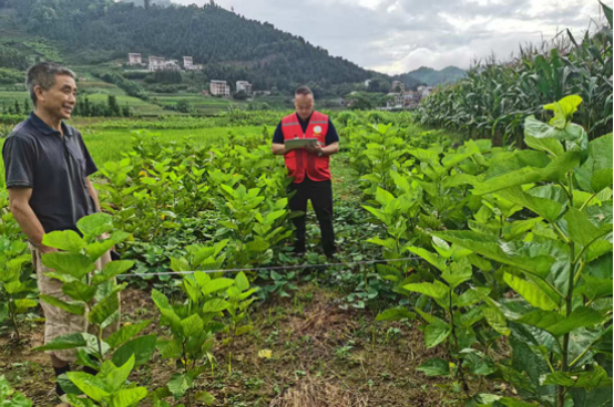 央里村第一書記梁仁義正在和村民一起測量套種間距