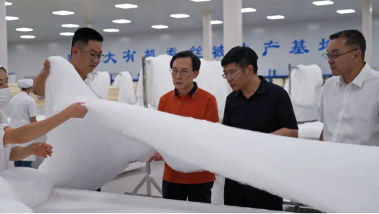 中國絲綢協(xié)會副秘書長楊愛萍、四川省絲綢協(xié)會名譽會長陳祥平、四川省絲綢協(xié)會秘書長唐仕成、縣繭絲企業(yè)相關(guān)負責(zé)人一行參加考察論證座談。