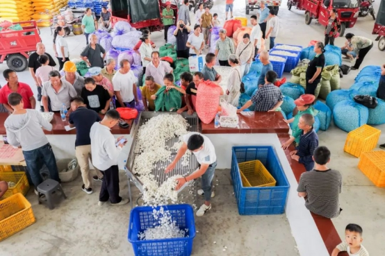 8月11日,貴州絲緣蠶業(yè)科技有限公司蠶繭收購現(xiàn)場人頭攢動,蠶農(nóng)們帶著一袋袋雪白的蠶繭排隊等待出售,工作人員正忙著分揀、評定等級、稱量、開票、付款、登記、分類堆放等,忙得不亦樂乎,現(xiàn)場一片繁忙豐收景象。