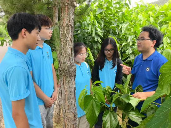 時值盛夏,桑樹長勢喜人。實踐團指導老師鄒金城在桑園為同學們上了一堂生動的蠶桑科普課,他介紹了江蘇科技大學蠶業(yè)研究所現(xiàn)有的桑樹品種,并將理論與實踐相結(jié)合,深化了同學們對蠶桑產(chǎn)業(yè)的認識。