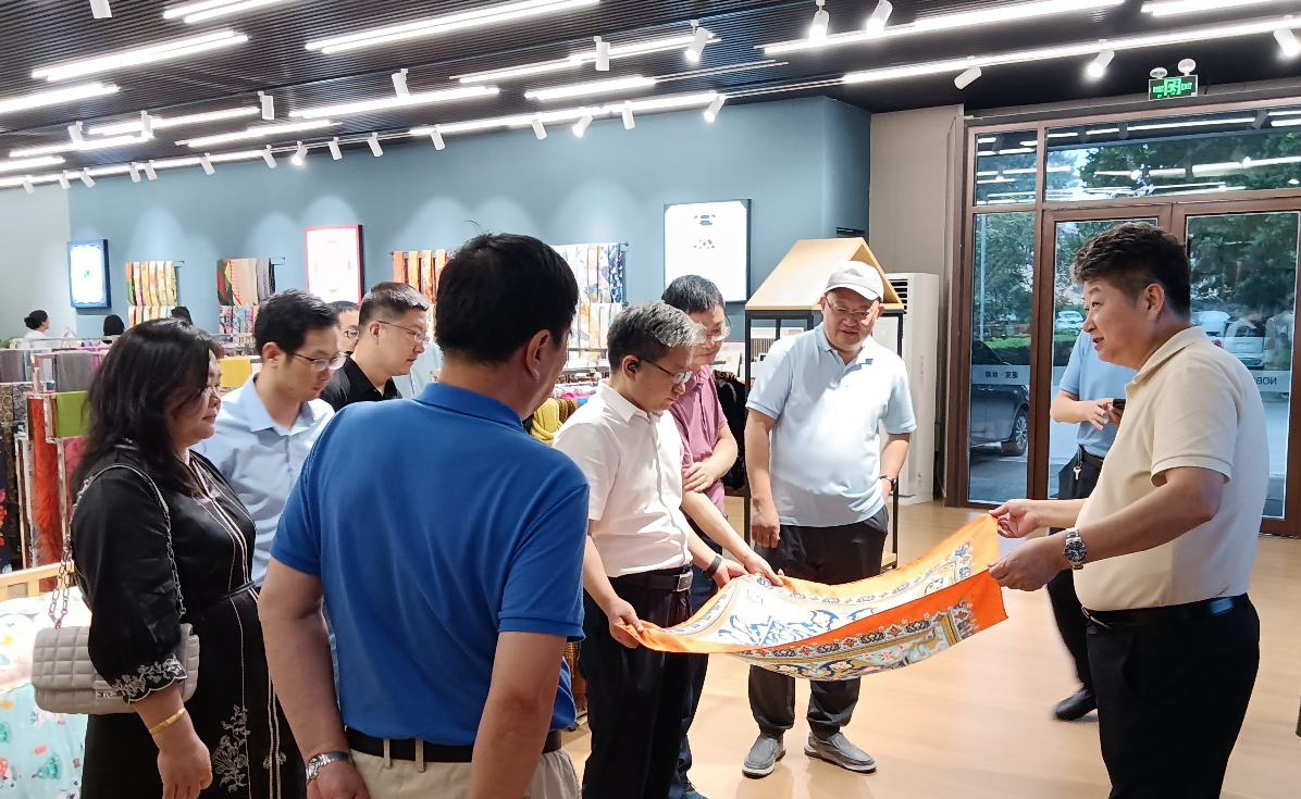 代方銀首席一行實地考察了淄博大染坊絲綢集團有限公司,中國絲綢協(xié)會副會長、集團公司黨委書記、董事長陳魯介紹了企業(yè)在絲綢生產(chǎn)、非遺保護、文旅融合等方面的情況。雙方圍繞絲綢文化傳承與產(chǎn)業(yè)創(chuàng)新等主題進行了座談交流,代方銀首席和崗位科學家們就絲綢文化挖掘與發(fā)揚、傳統(tǒng)產(chǎn)業(yè)現(xiàn)代化轉(zhuǎn)型等方面提供了新思路,雙方還就國家蠶桑體系成果在企業(yè)轉(zhuǎn)化應用進行了探討。