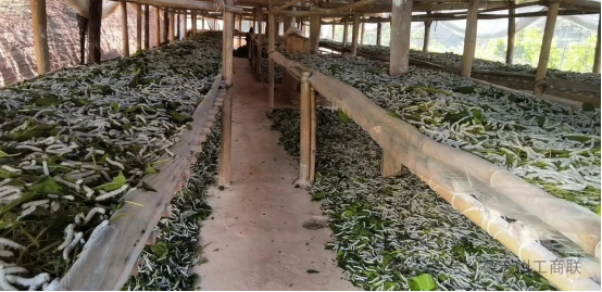“托”字打底,讓農(nóng)戶養(yǎng)蠶沒顧慮。養(yǎng)蠶技術(shù)難度較高,特別是在1-2齡小蠶階段,由于基礎(chǔ)條件、技術(shù)水平限制等原因,農(nóng)戶自行養(yǎng)殖面臨較大風(fēng)險(xiǎn)。為降低農(nóng)戶養(yǎng)蠶風(fēng)險(xiǎn)并保證收益,公司探索推行“小蠶共育室托養(yǎng)+大蠶全程技術(shù)指導(dǎo)”的飼養(yǎng)模式,技術(shù)難、風(fēng)險(xiǎn)高的1-2齡小蠶由企業(yè)基地飼養(yǎng),長(zhǎng)到3齡后配送給農(nóng)戶養(yǎng)殖,蠶農(nóng)可以一次多養(yǎng),每批養(yǎng)蠶時(shí)間縮短一半,年養(yǎng)蠶總收入可提高一倍。這種分段養(yǎng)模式降低了技術(shù)門檻,實(shí)現(xiàn)農(nóng)戶低風(fēng)險(xiǎn)、多批次、規(guī)?;B(yǎng)殖。