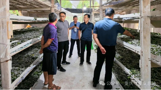 9月2日,重慶市蠶業(yè)總站副站長(zhǎng)張?zhí)?、余華獻(xiàn)與市蠶科院副院長(zhǎng)蔣定超、原合川區(qū)蠶桑站張?zhí)蒲芯繂T一同赴合川區(qū)蠶寶寶蠶桑專(zhuān)業(yè)合作社,對(duì)桑蠶新品種“縉嶺×云霞”農(nóng)村試驗(yàn)開(kāi)展中期評(píng)估。經(jīng)走訪3家飼育蠶農(nóng)現(xiàn)場(chǎng)查看及調(diào)查顯示,該品種發(fā)育整齊、取食性優(yōu)、健康性良好,蠶農(nóng)操作規(guī)范、技術(shù)管理到位,農(nóng)村試驗(yàn)取得階段性進(jìn)展,后續(xù)工作正按實(shí)施方案穩(wěn)步推進(jìn)。