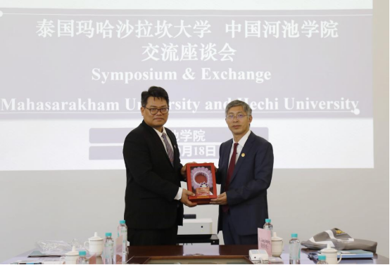 Prayook Srivilai校長高度重視本次訪問,專門組織包括分管科研、健康和體育的校長助理,商學(xué)院、技術(shù)學(xué)院、傳媒學(xué)院、人文學(xué)院、理學(xué)院、孔子學(xué)院院長,以及教育服務(wù)處、計劃處等職能部門領(lǐng)導(dǎo)組成的11人訪問團到訪我校。Prayook Srivilai校長對我校的熱情接待表示感謝,并對周到的行程安排表示非常滿意。他介紹了瑪哈沙拉坎大學(xué)在農(nóng)業(yè)科學(xué)、生物技術(shù)、教育與人文等領(lǐng)域的學(xué)科優(yōu)勢。他表示,河池學(xué)院在蠶桑產(chǎn)業(yè)研究與技術(shù)服務(wù)方面取得了顯著成果,雙方在該領(lǐng)域具有廣闊的合作前景,希望通過此次訪問,推動兩校在人才培養(yǎng)、科研合作及產(chǎn)業(yè)服務(wù)等方面建立長期合作機制。