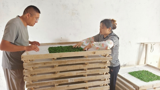 李中華和夏桂香在育蠶室管理第二批晚秋小蠶