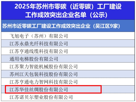 9月28日,蘇州市工業(yè)和信息化局對全市零碳(近零碳)建設(shè)工作成效突出的企業(yè)予以公示,全市共有44家企業(yè)上榜近零碳工廠名單,華佳絲綢憑借在綠色制造和可持續(xù)發(fā)展方面的卓越實踐成功入選。
