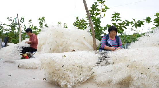 走進(jìn)蠶室,一片白花花的蠶繭映入眼簾,個(gè)個(gè)飽滿厚實(shí),密密匝匝地結(jié)滿了蠶蔟。十多名工人正有條不紊地將成熟的蠶繭輕輕摘下,并剔除次品與壞繭。蠶桑產(chǎn)業(yè)的發(fā)展,不僅盤活了土地資源,也為社區(qū)和周邊群眾提供了在家門口就業(yè)的機(jī)會(huì),實(shí)現(xiàn)“顧家、增收兩不誤”。