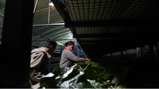 深秋清晨,海拔2400米的拉烏鄉(xiāng)碧雞村委會山坡上寒意襲人,而養(yǎng)蠶大棚內(nèi)卻爐火正旺。工人們將肥碩的桑葉均勻撒在蠶床上,隨著最后一片桑葉落下,60萬只“蠶寶寶”開始大快朵頤,蠶房內(nèi)頓時回響起一片細雨般的“沙沙”聲。這片曾經(jīng)荒蕪的山坡,如今正煥發(fā)出蓬勃生機。