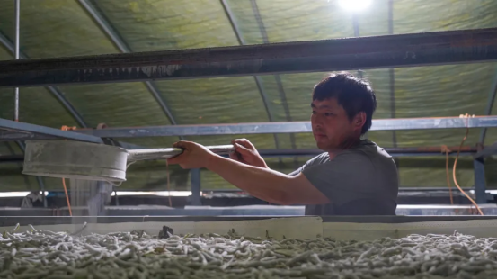“今年我養(yǎng)了3批蠶,前兩批已收獲蠶繭1150公斤,收入約7萬元?,F(xiàn)在這批預(yù)計能收900-1000公斤,全年總收入估計能達到11-12萬元?!别B(yǎng)殖場負責(zé)人王李祥說。而在投身桑蠶養(yǎng)殖之前,他曾長期從事生豬養(yǎng)殖和核桃收購,但由于投入大、市場波動頻繁,兩項生意都未能形成穩(wěn)定收入來源。
