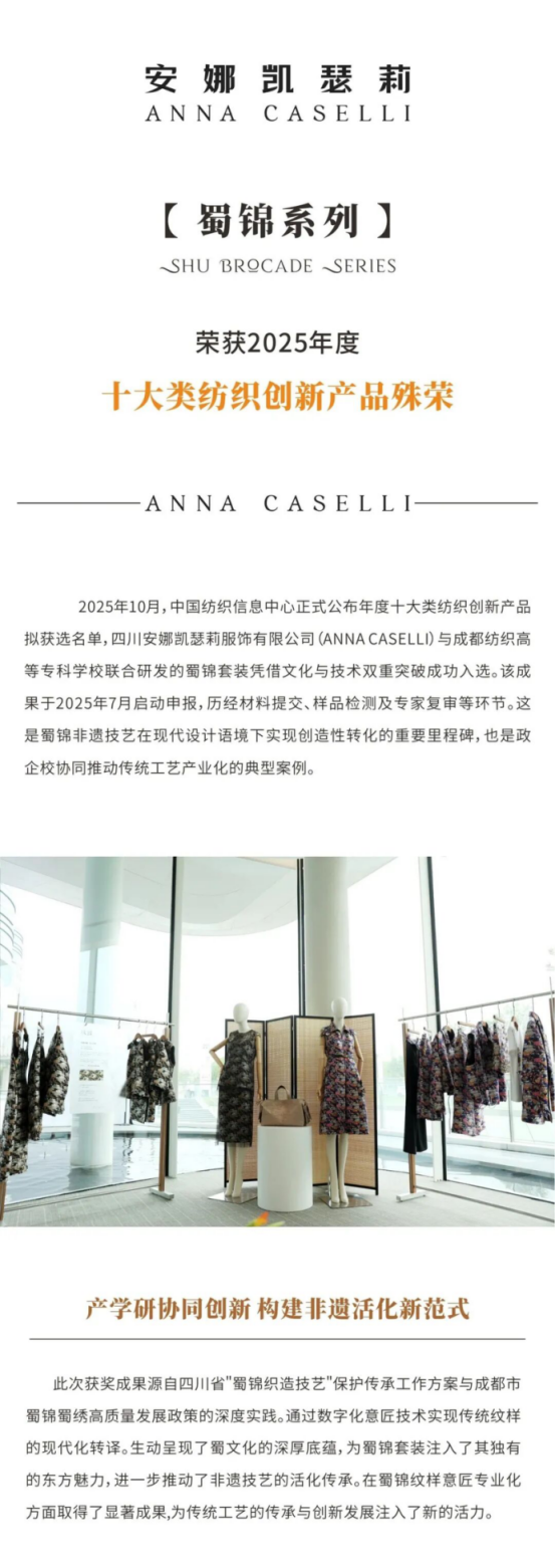 行業(yè)新聞丨安娜凱瑟莉蜀錦系列榮獲2025年度十大類紡織創(chuàng)新產(chǎn)品殊榮