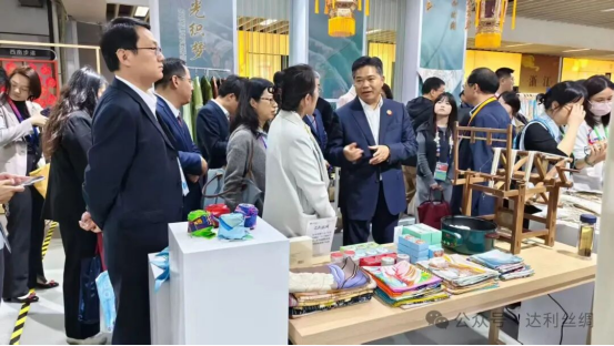 ——上海第八屆進博會,商務(wù)部黨組成員、副部長盛秋平等領(lǐng)導(dǎo)蒞臨進博會達(dá)利絲綢展區(qū);