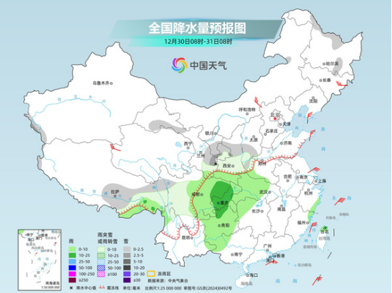 2025年12月30日至2026年1月1日,西藏東部、西北地區(qū)東部、黃淮西部、江漢西部等地部分地區(qū)將有一次明顯雨雪天氣過(guò)程,陜西、山西、河南等地部分地區(qū)雨雪混雜。雨雪天氣或影響元旦假期出行,公眾外出需關(guān)注預(yù)警預(yù)報(bào)信息,駕車出行留出安全剎車距離,謹(jǐn)防道路濕滑。