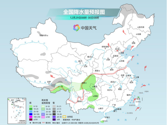 今天(12月29日),我國(guó)大部地區(qū)維持晴朗干燥天氣,明后天雨雪天氣發(fā)展增多,部分地區(qū)雨雪混雜,公眾外出需小心慢行,注意交通安全。眼下,正有一股冷空氣影響我國(guó),華北、東北多地將現(xiàn)降溫,明天開(kāi)始新一股冷空氣將接力,降溫影響或延續(xù)至元旦假期,局地累計(jì)降溫幅度可超10℃,公眾需注意氣溫變化,及時(shí)添衣保暖。