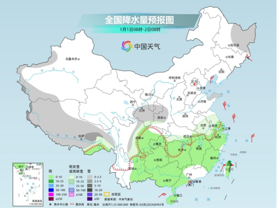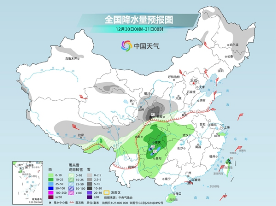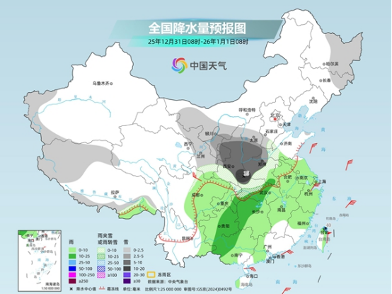 除了降溫,冷空氣還將帶來(lái)大范圍雨雪天氣。隨著冷空氣南下與暖濕氣流交匯,今天至2026年1月1日,中東部將現(xiàn)大范圍雨雪,陜西中南部、山西南部、河南西部、湖北西部部分高海拔地區(qū)有大雪或暴雪,最強(qiáng)降雪時(shí)段為2025年12月31日至2026年1月1日早晨。