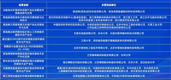 第十二屆“中國(guó)十大紡織科技”成果列表