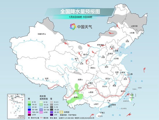 昨天,我國(guó)大部雨雪稀少,東北地區(qū)出現(xiàn)分散性弱降水。監(jiān)測(cè)顯示,7日8時(shí)至8日6時(shí),黑龍江中東部、吉林中東部等地出現(xiàn)小到中雪或雨夾雪。