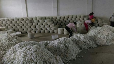 由于今年天氣好,桑葉質(zhì)量好,加上飼養(yǎng)管理到位,收成普遍較好,蠶繭質(zhì)量和產(chǎn)量均去年有所提高。據(jù)金蠶網(wǎng)工作人員現(xiàn)場了解到,收購價格在1公斤39元左右。