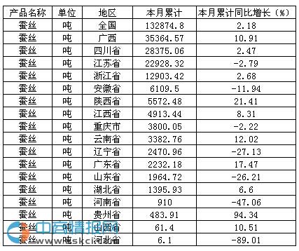 中商產(chǎn)業(yè)研究院數(shù)據(jù)顯示:2015年1-10月生產(chǎn)蠶絲13.29 萬噸,同比增長2.18 %。